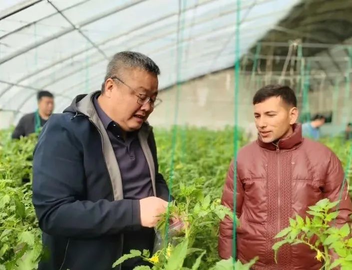 专家们仔细观察蔬菜生长态势,结合当地气候、土壤条件,针对常见蔬菜种植管理现场指导,传授技术要点。自治区农业科学院植物保护研究所研究员许建军(左)正在大棚当下,南疆各地蔬菜产业发展势头正劲。在伽师县蔬菜产业融合示范园,网红产品“喀什红”口感番茄,每公斤售价60元,供不应求;疏勒县的新疆喀什(山东水发)现代蔬菜产业园,草莓、水果黄瓜正值上市,生机勃勃;阿克陶县恰尔隆镇蔬菜大棚中,彩椒即将出口中亚及俄罗斯,前景广阔。